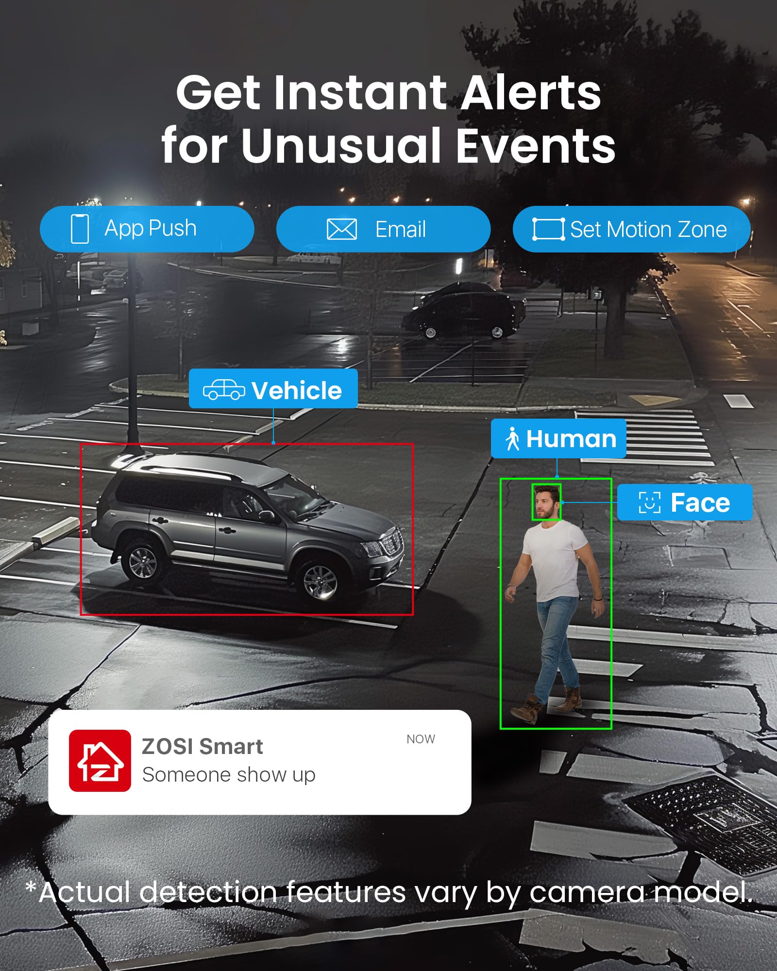 - 【Smart AI Detection with Instant Alerts】Our AI-powered detection feature intelligently identifies faces, people, vehicles, or other objects, reducing unnecessary notifications. Whenever a motion event is detected, you'll receive instant push alerts through the app and email notifications. Stay on top of any activity with our advanced detection technology.