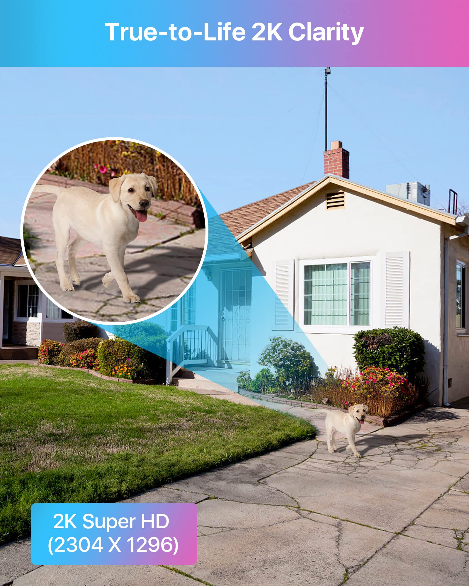 - (2). [ Crystal Clear 2K Super HD & Color Night Vision ] __ Immerse yourself in astonishing 2K HD video quality, now with the added brilliance of color night vision, amplified by the camera's IR night vision capabilities spanning up to 50ft. Capture complete scenes with unparalleled clarity and intricate details. This camera boasts an IP66 weatherproof rating, guaranteeing seamless operation even in demanding weather conditions, both indoors and outdoors.